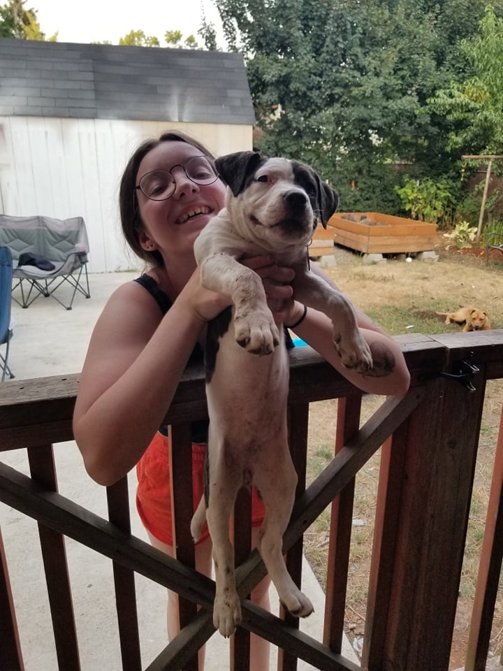 My name is Izzy, but everyone calls me moo-moo. I lower my head really low when I am begging or asking for something, so I also am called the bow-cow! I have a natural drive to pull and run, so my dad has a bike he lets me pull for fun! While I am pretty crazy, and it takes a minute for me to warm up to you, you would never know a happier, snugglier pup!